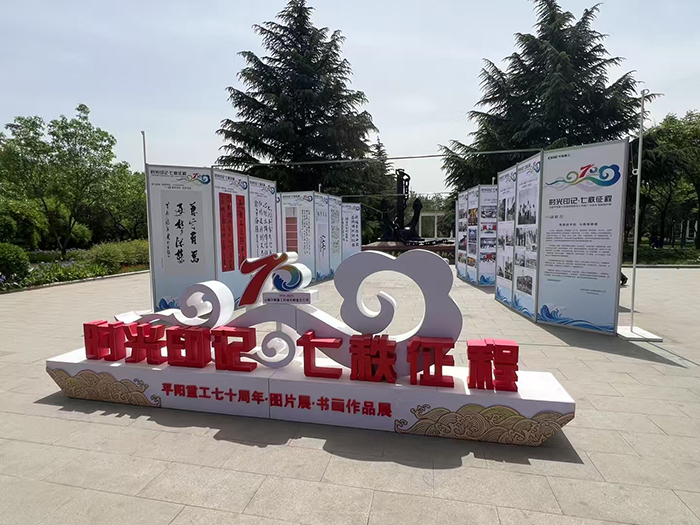 4月22日,中船集團(tuán)平陽重工“時(shí)光印記?七秩征程”主題書畫圖片展在平陽公園鐵錨處開啟。