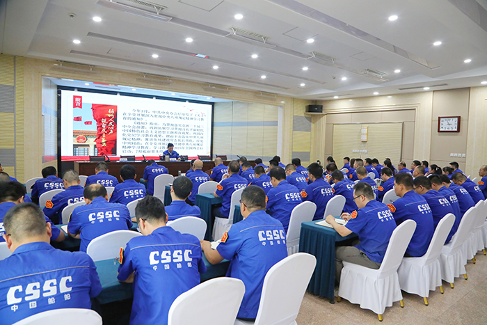 為推動(dòng)深入貫徹中央八項(xiàng)規(guī)定精神學(xué)習(xí)教育走深走實(shí),進(jìn)一步鞏固拓展黨紀(jì)學(xué)習(xí)教育成果,切實(shí)增強(qiáng)黨員干部的紀(jì)律意識(shí)和規(guī)矩意識(shí),持續(xù)深化作風(fēng)建設(shè),6月19日,中船集團(tuán)平陽(yáng)重工黨委書記、董事長(zhǎng)聶秋社以《深入貫徹中央八項(xiàng)規(guī)定精神,持續(xù)加強(qiáng)作風(fēng)建設(shè)》為題講授學(xué)習(xí)教育專題黨課。公司領(lǐng)導(dǎo)班子成員、中層及以上領(lǐng)導(dǎo)人員和所在支部、聯(lián)系點(diǎn)支部黨員及重點(diǎn)部門關(guān)鍵領(lǐng)域風(fēng)險(xiǎn)崗位黨員130余人參加會(huì)議。
